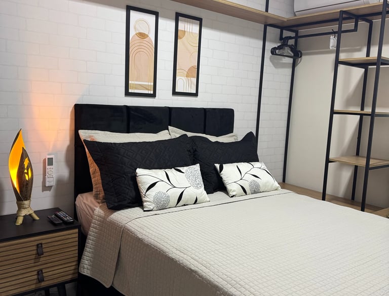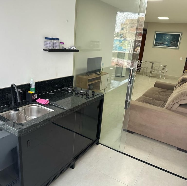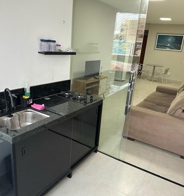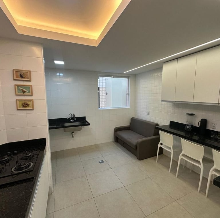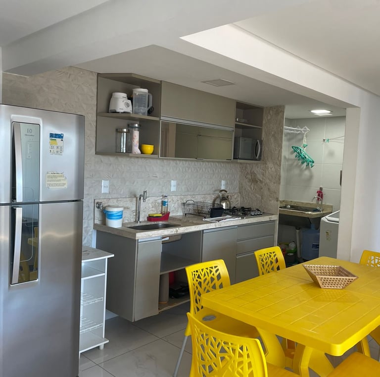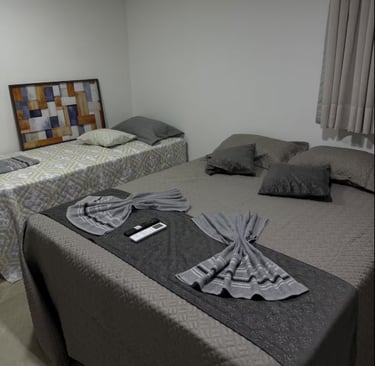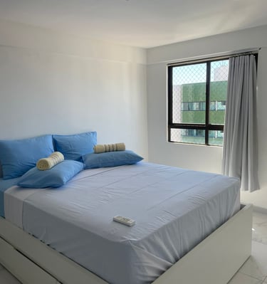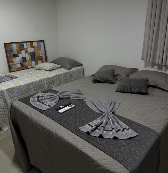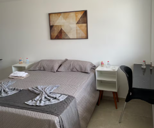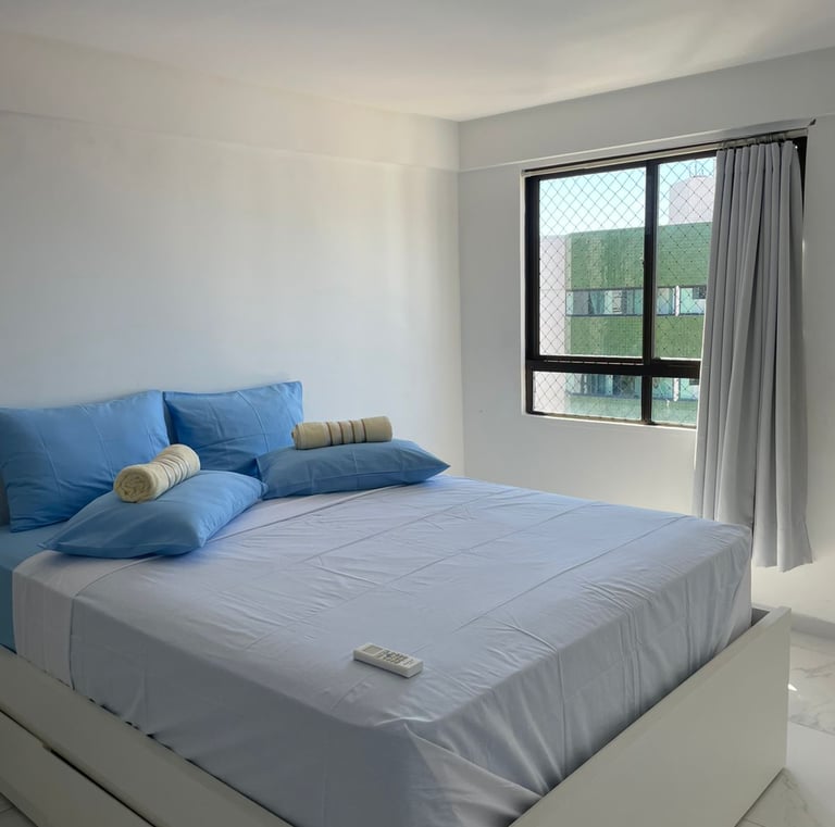 Conta com uma cama de casal e uma de solteiro, flat novinho e aconchegante pertinho da praia...